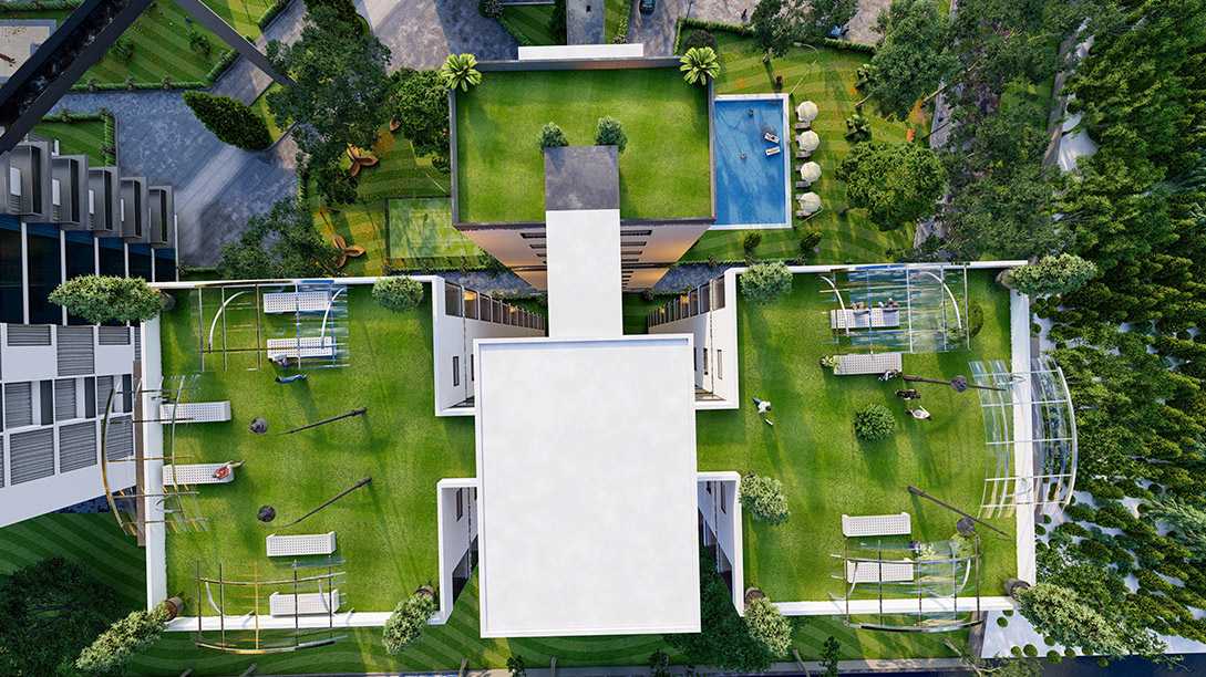 Only 20% of the area is for apartments, and they are surrounded by green on all sides.